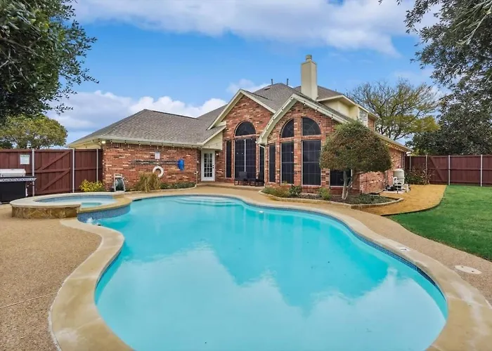 Situated in the heart of Rowlett, the Modern Spacious - Pool & Backyard Oasis & Cinema seamlessly marries elegance with comfort, making it the perfect sanctuary for both leisure and business travelers. Located a mere 50 kilometers from the bustling Dallas Love Field, guests can swiftly transition from the energy of the city to the tranquility offered by this exquisite retreat.